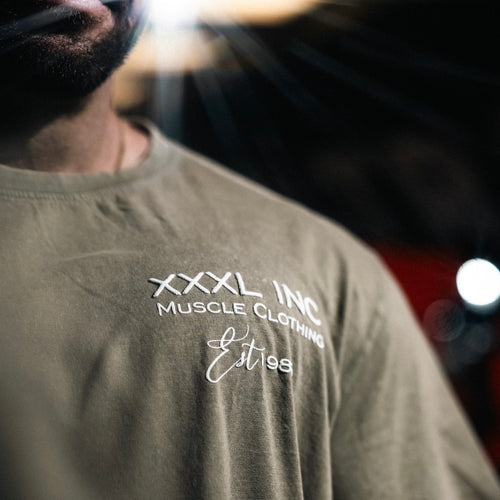 " Cursive Script" Stone washed Oversized T - Pastel Olive
